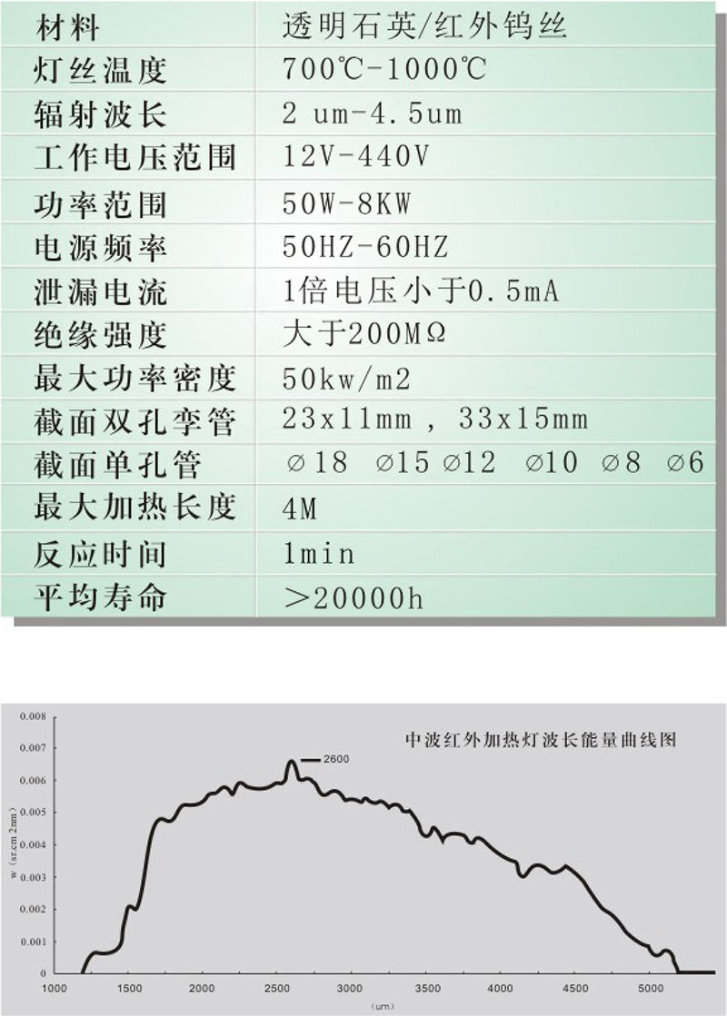 中波紅外線輻射加熱燈